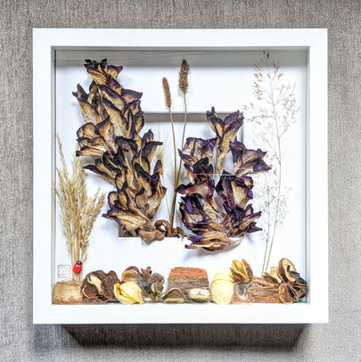 Sunflowers were dried with a unique technique at room temperature without desiccant to allow a wilting effect while maintaining the flower shape.